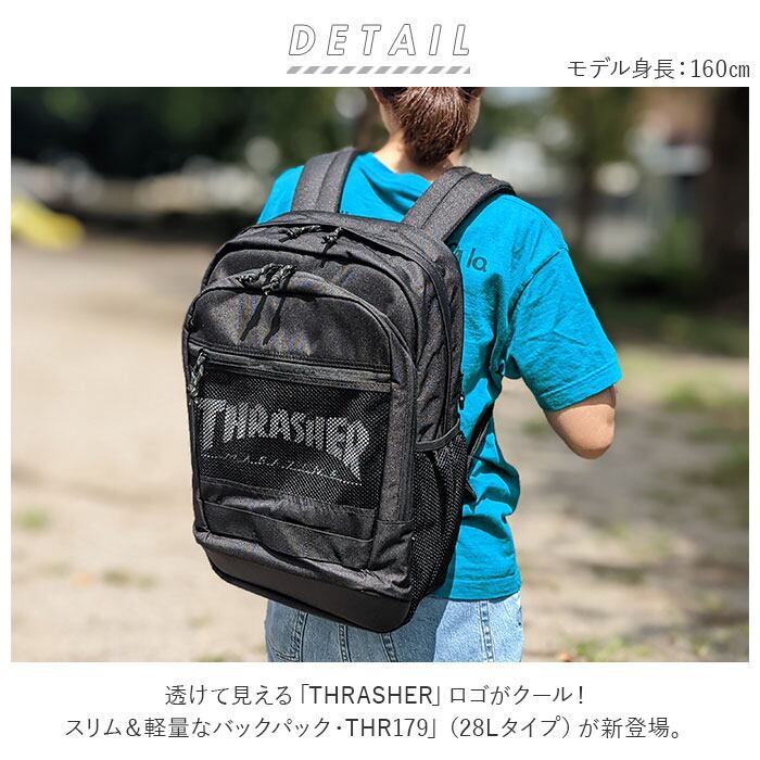 スラッシャー リュック THR-179 THRASHER 通販 メンズ 大容量 28L A4 B4 通学 通勤 おしゃれ カジュアル 軽量 軽い 撥水 はっ水 シンプル 消臭 抗菌 ポケット メッシュポケット リュックサック バックパック デイパック ユニセックス 男女兼用 レディース メンズバッグ