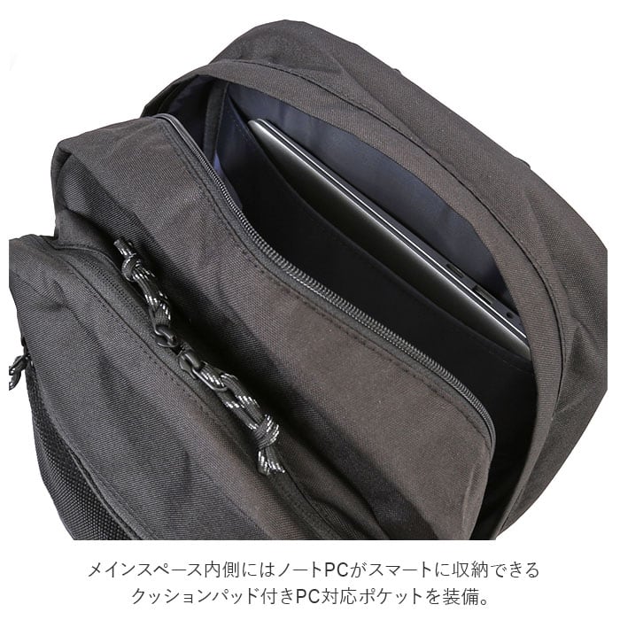 ・メインスペース内側にはノートPCがスマートに収納できるクッションパッド付きPC対応ポケットを装備。