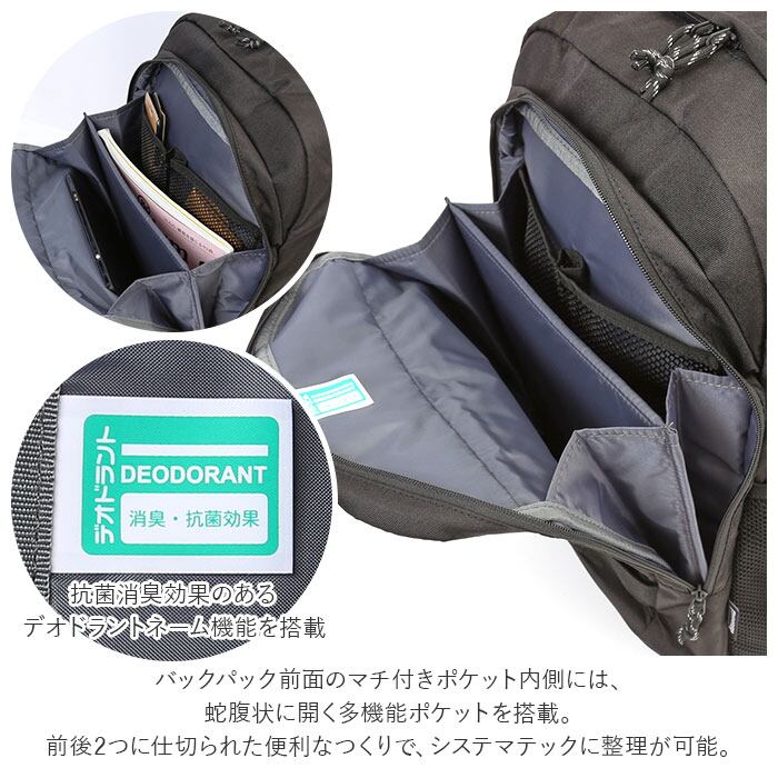 ・抗菌消臭効果のあるデオドラントネーム付きポケットなので、予備のマスクのストックにも最適。