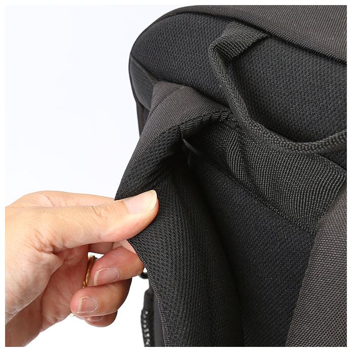 ・身体に触れるバッグ背面部分には、クッション性・通気性に優れたメッシュ生地を使用し、ムレや摩擦を軽減。チェストベルト付きのショルダーで、安定した状態で背負えるのも嬉しいポイント。
