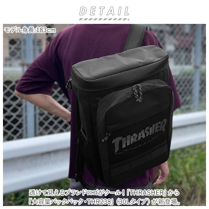 ・透けて見えるブランドロゴがクール!「THRASHER」から「大容量バックパック・THR238」(30Lタイプ)が新登場。