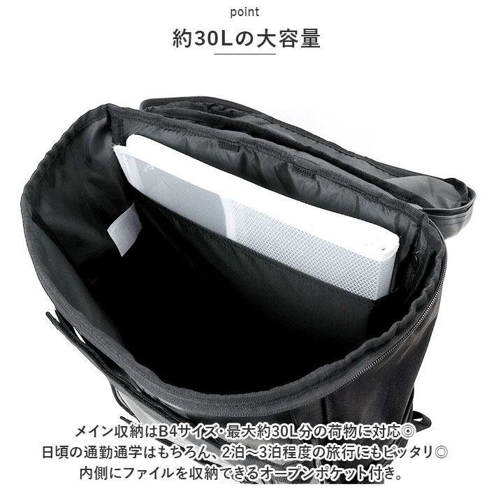・メイン収納はB4サイズ・最大約30L分の荷物に対応◎日頃の通勤通学はもちろん、2泊~3泊程度の旅行にもピッタリ◎