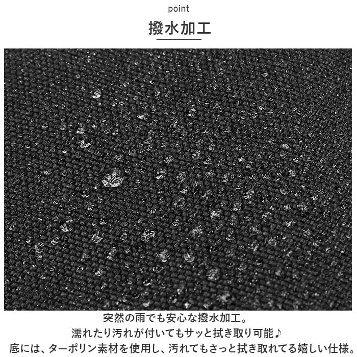 ・底には、ターポリン素材を使用し、汚れてもさっと拭き取れてる嬉しい仕様。