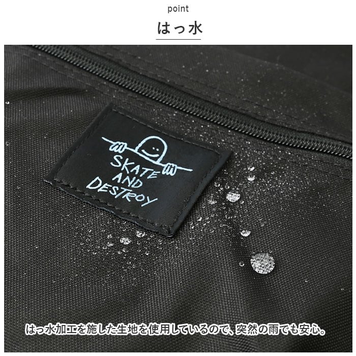 ・はっ水加工を施した生地を使用しているので、突然の雨でも安心。