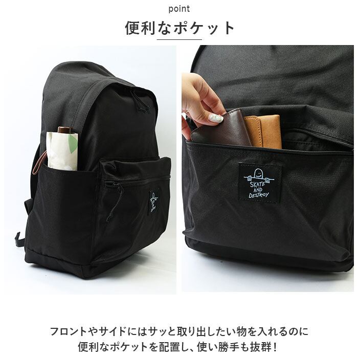 ・フロントやサイドにはサッと取り出したい物を入れるのに便利なポケットを配置し、使い勝手も抜群!