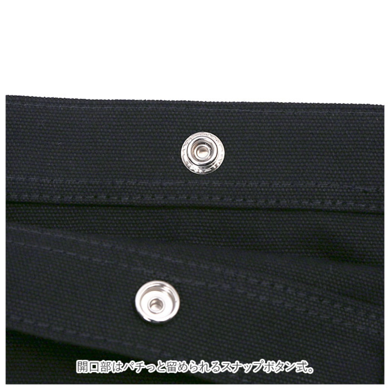 ・開口部はパチっと留められるスナップボタン式。