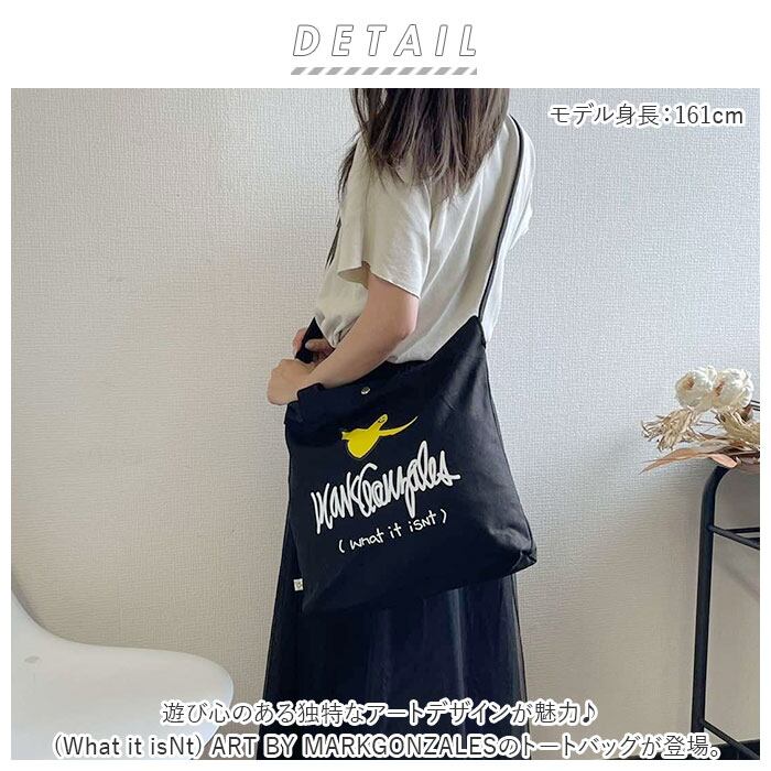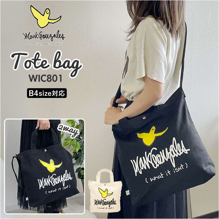 マークゴンザレス トートバッグ Mark Gonzales WIC801 通販 メンズ キャンバス 大きめ ブランド 肩掛け 斜めがけ 通学 通勤 A4 B4 シンプル ユニセックス 2way ショルダー ショルダーバッグ おしゃれ デザイン (What it isNt) ART BY MARKGONZALES ワットイットイズント