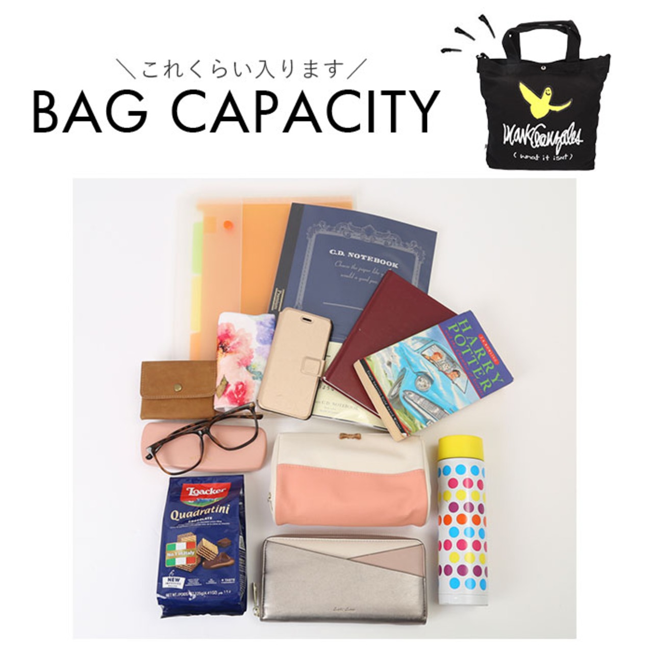 ・カジュアルに使えるナチュラルなキャンバス素材に、ブランドアイコンであるエンジェルを大きくプリント♪