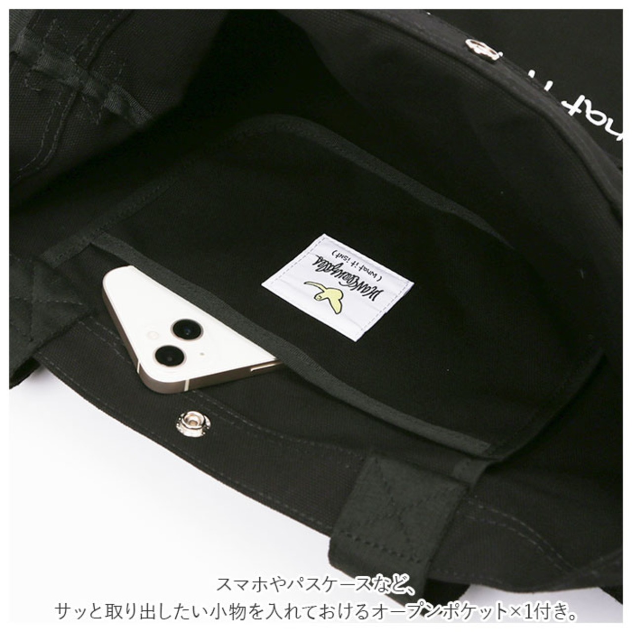 ・スマホやパスケースなど、サッと取り出したい小物を入れておけるオープンポケット×1付き。