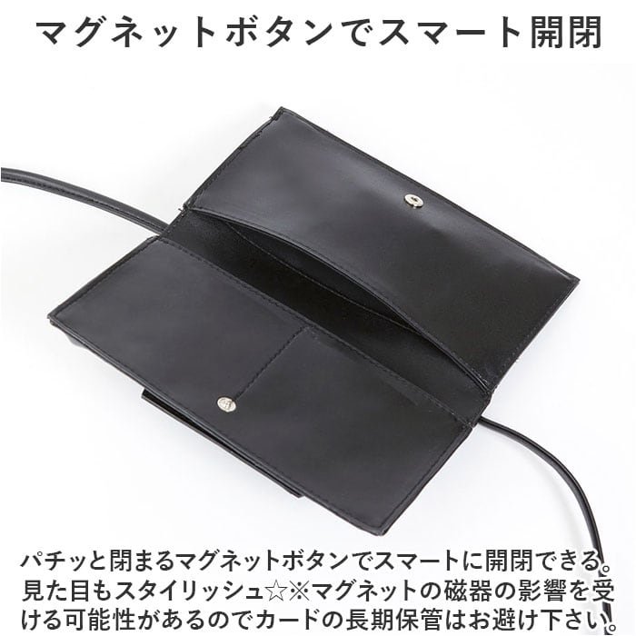 ・お財布機能のある仕様に加え、スマホやリップなどの小物も収納OK!これ1つで身軽にお出かけ♪