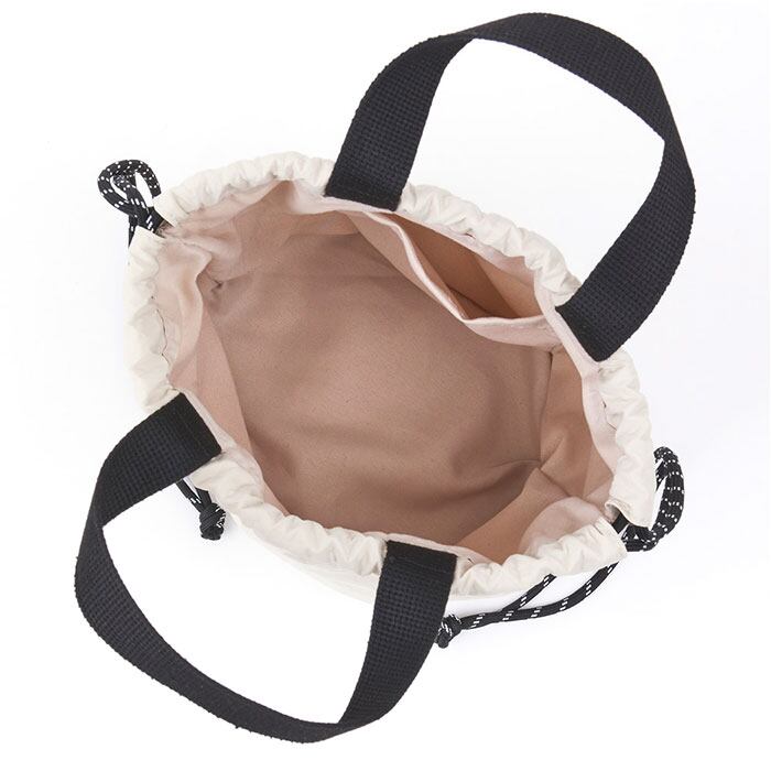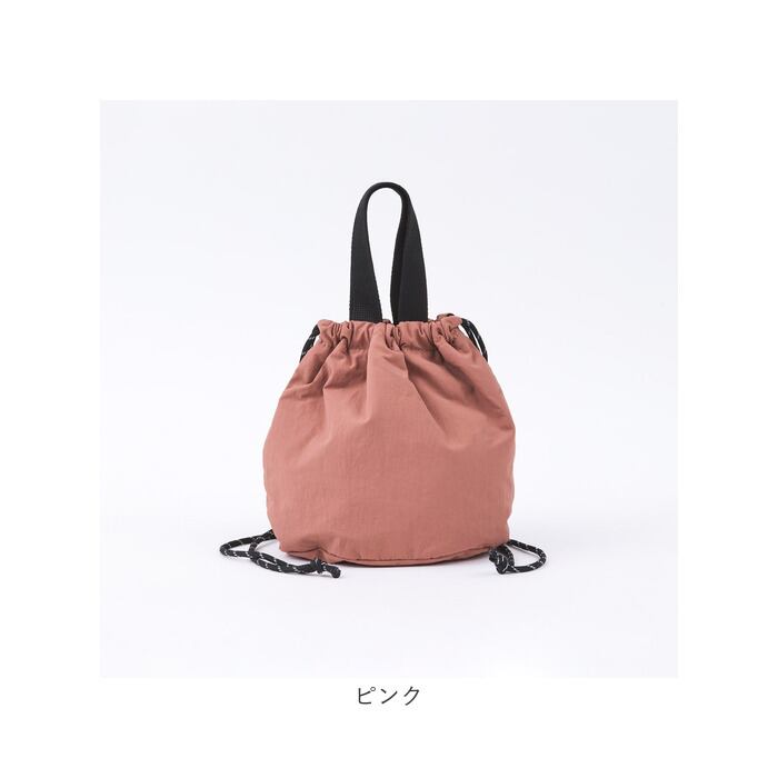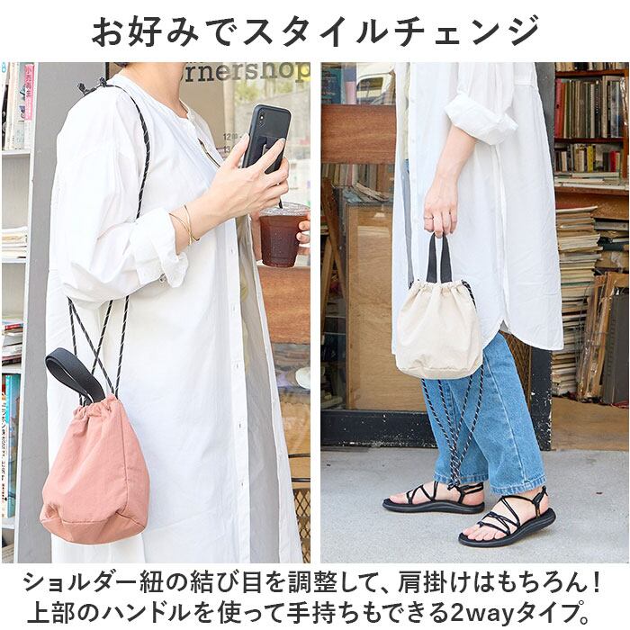 ・ショルダー紐の結び目を調整して、肩掛けはもちろん!上部のハンドルを使って手持ちもできる2wayタイプ。