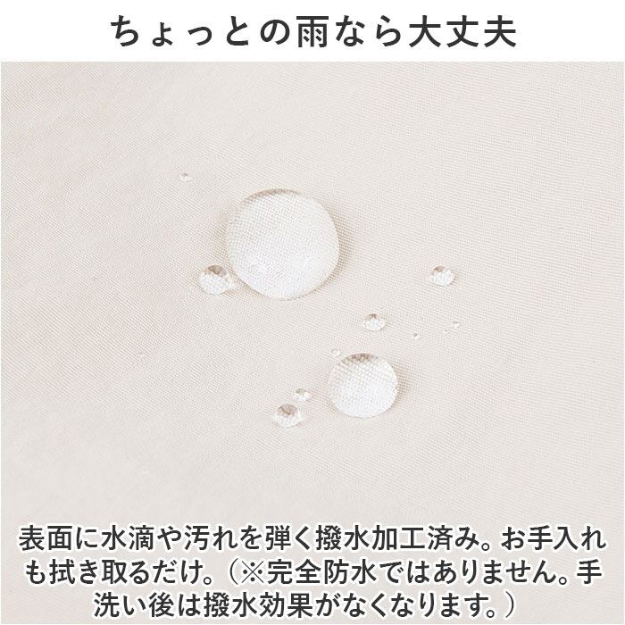 ・表面に水滴や汚れを弾く撥水加工済み。お手入れも拭き取るだけ。(※完全防水ではありません。手洗い後は撥水効果がなくなります。)