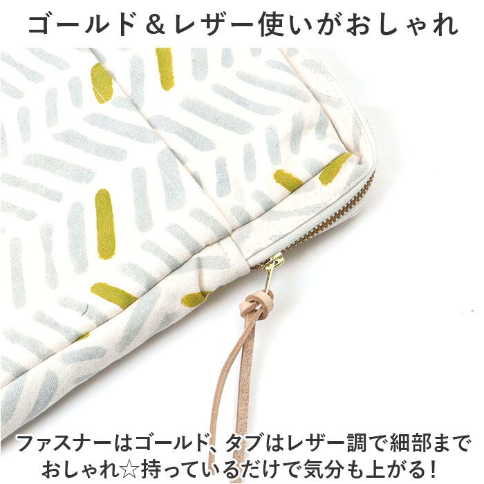 ・ファスナーはゴールド、タブはレザー調で細部までおしゃれ☆持っているだけで気分も上がる!