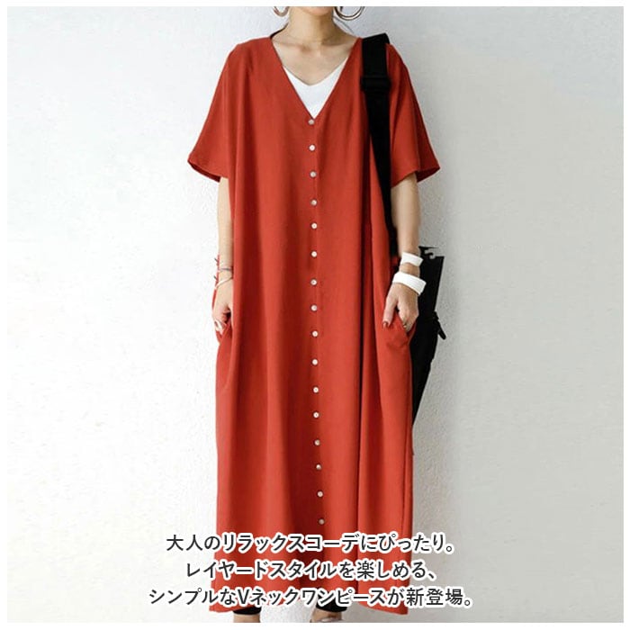 ・大人のリラックスコーデにぴったり。レイヤードスタイルを楽しめる、シンプルなVネックワンピースが新登場。