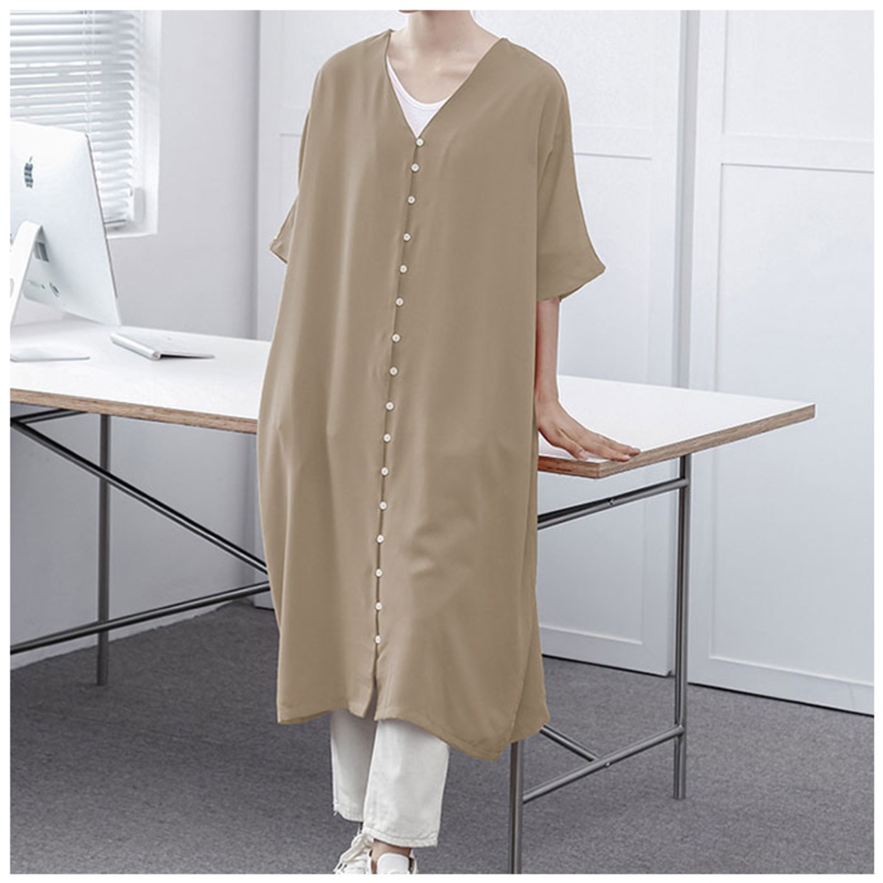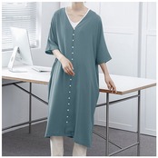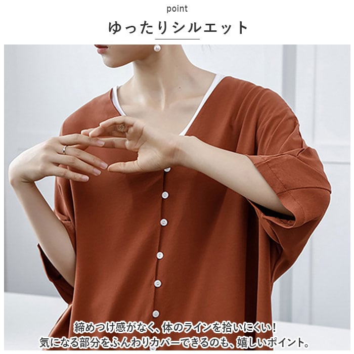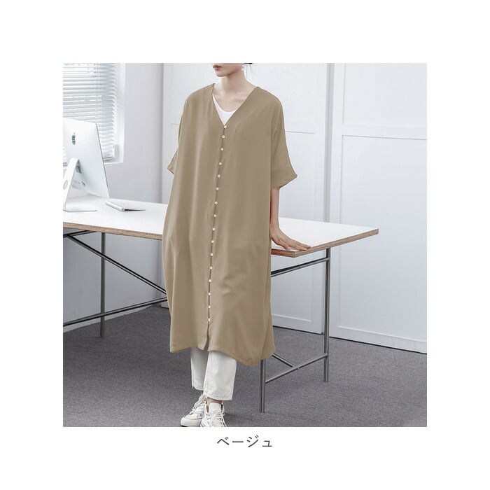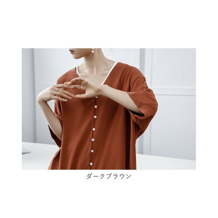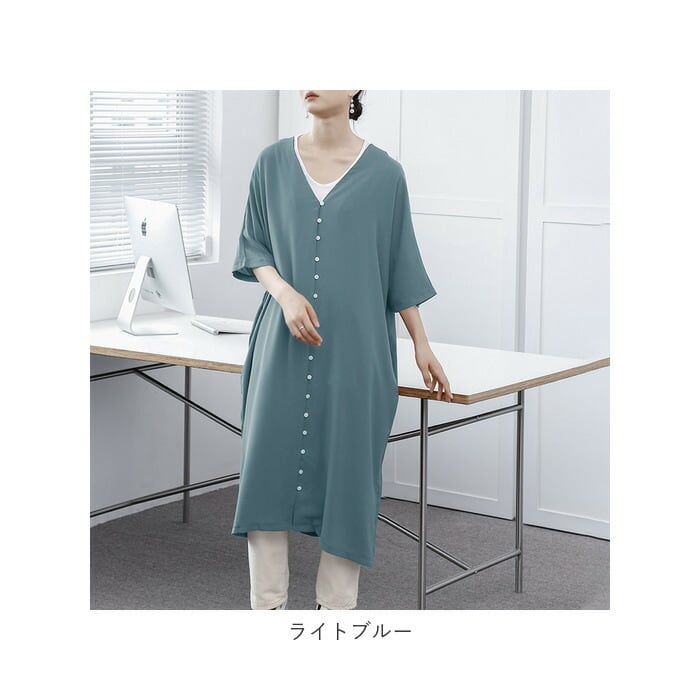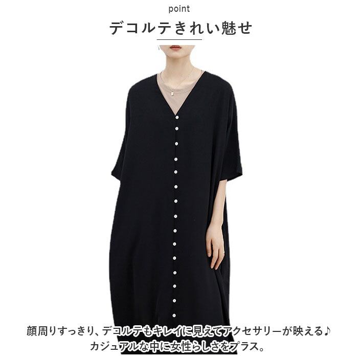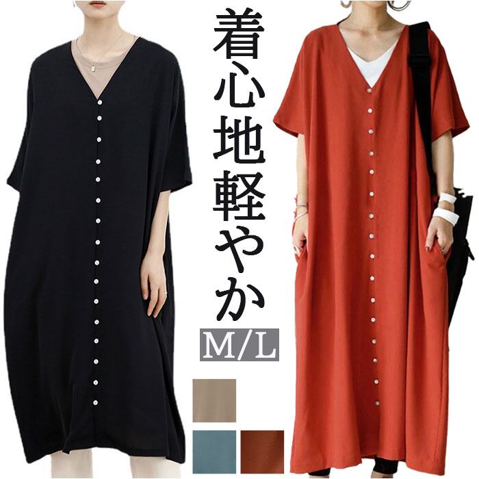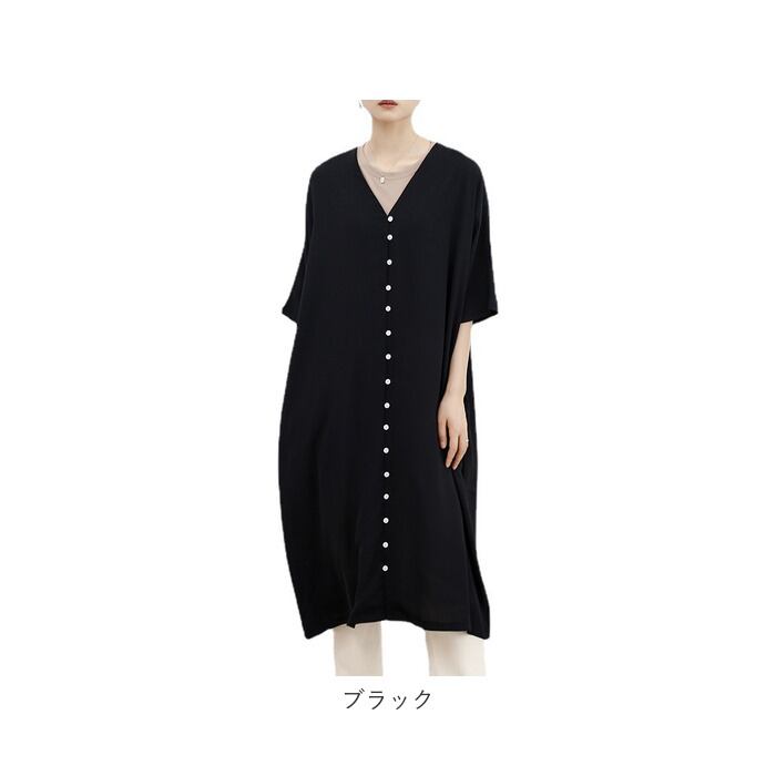 フロントボタン ワンピース 通販 レディース 半袖 ロング丈 半袖ワンピース ロングワンピース 5分袖 五分袖 ゆったり カジュアル ナチュラル 体型カバー 無地 シンプル 羽織もの 羽織り はおり 春 夏 春夏 ひざ下丈 トップス レディースファッション