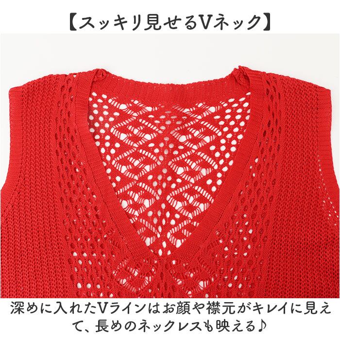 ・シンプルで落ち着いたワンカラー仕上げ。重い印象を与えない、透かし編みデザイン。