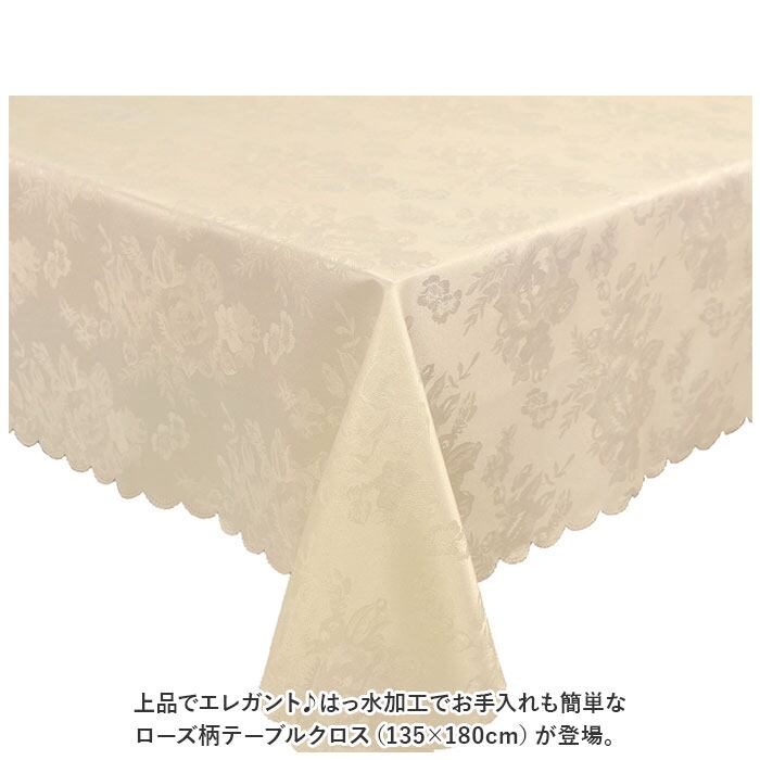 ・上品でエレガント♪はっ水加工でお手入れも簡単なローズ柄テーブルクロス(135×180cm)が登場。