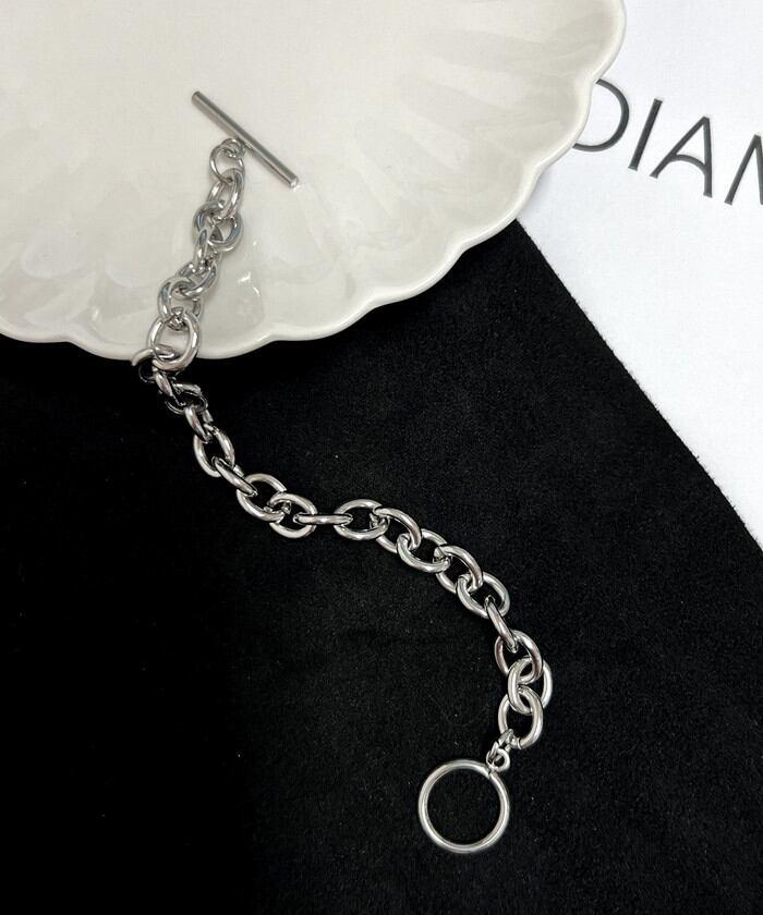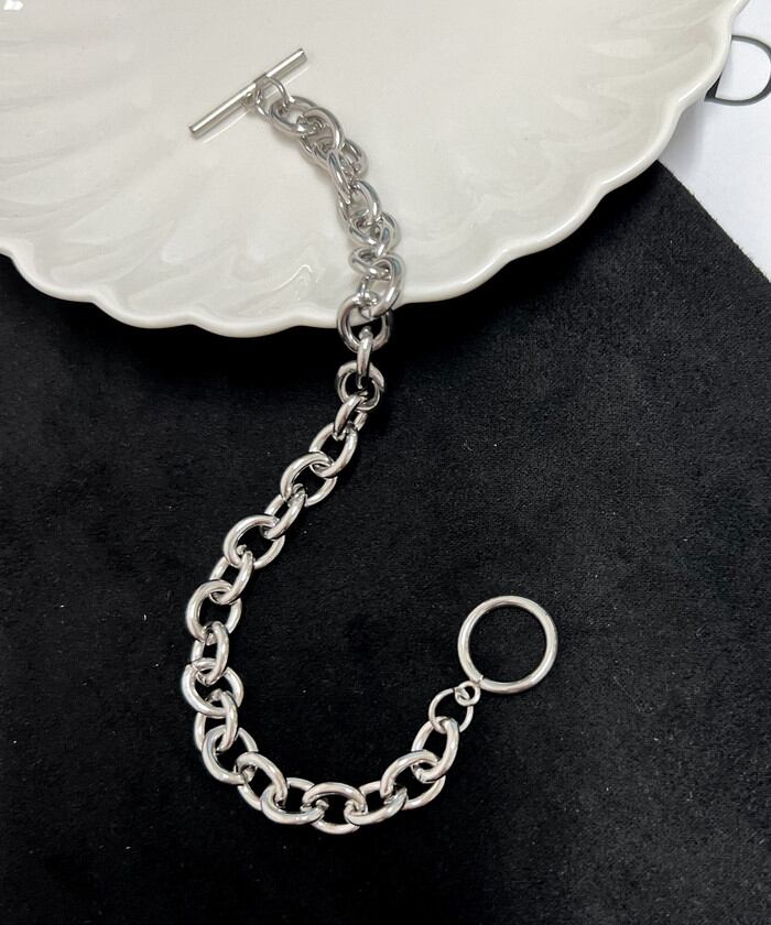 ・無骨な太めチェーンが存在感のあるシルバーブレスレット。