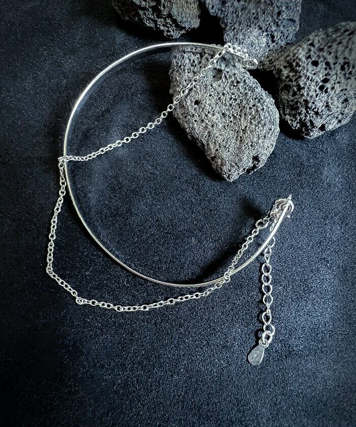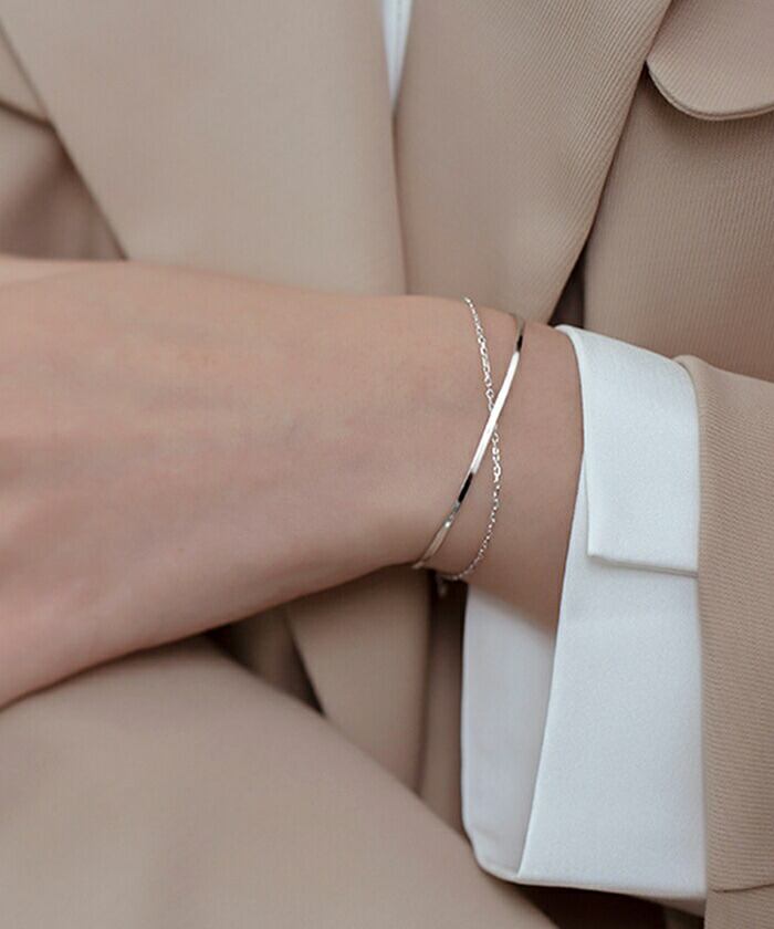・メタルライン×チェーンのシンプルな2連ブレスレット。