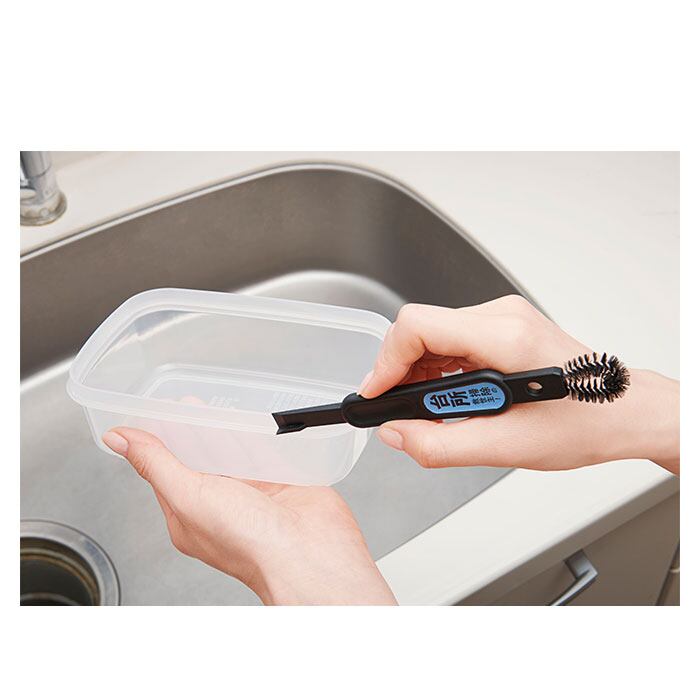 ・ブラシとヘラの2way。ブラシで排水口や五徳の汚れをこすり取り、ヘラでお弁当箱やコンロ・IHまわりの汚れをこそぎ取る!