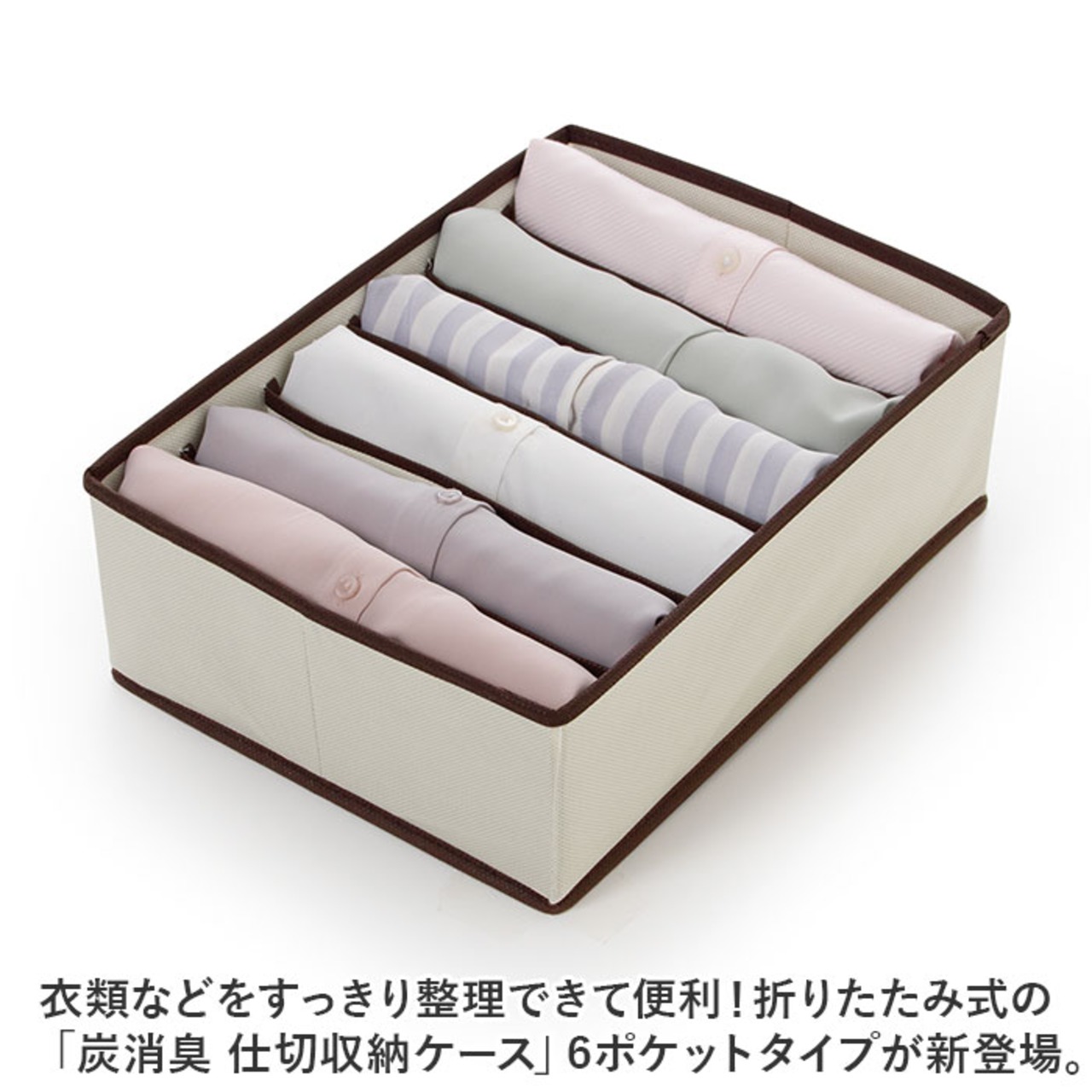 仕切り 収納 6ポケット 通販 衣類収納 ケース 仕切り付き収納ケース 仕切りケース 仕切収納ボックス 折り畳み コンパクト 折りたたみ 炭消臭 衣類整理 衣替え 衣料品 下着 肌着 タンス 箪笥 たんす 下着収納 小物収納 ブラジャー 収納用品