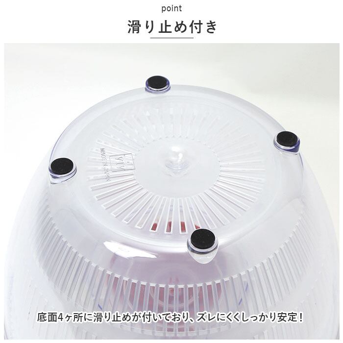 ・フタに水切り穴付きで、ボウルに溜まった水もフタをしたまま捨てることが可能。