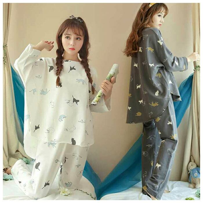 ルームウェア 可愛い 長袖 通販 レディース セット 上下セット かわいい パジャマ 春夏 秋冬 女性用 ゆったり おしゃれ M L XL 2XL アニマル ネコ 猫 ルームウエア 部屋着 ナイトウェア