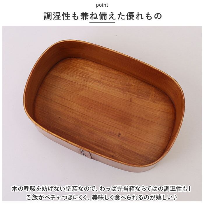 ・木の呼吸を妨げない塗装なので、わっぱ弁当箱ならではの調湿性も!ご飯がベチャつきにくく、美味しく食べられるのが嬉しい♪