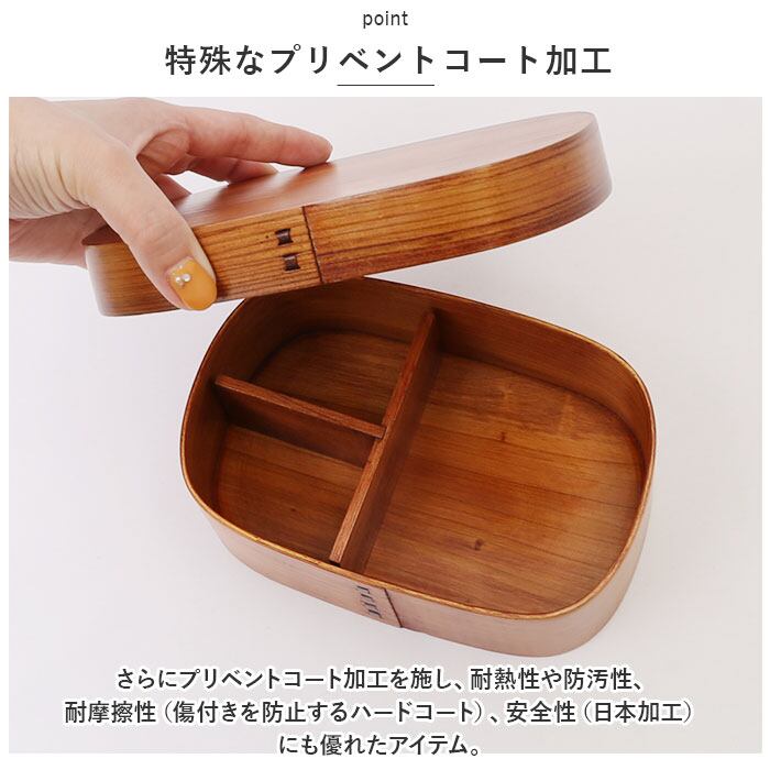 ・天然木の素地を使用しつつ、フタと本体は家庭用食洗機に対応!煩わしい手洗い不要でお手入れラクチン。(※仕切りは食洗機に対応しておりません。)