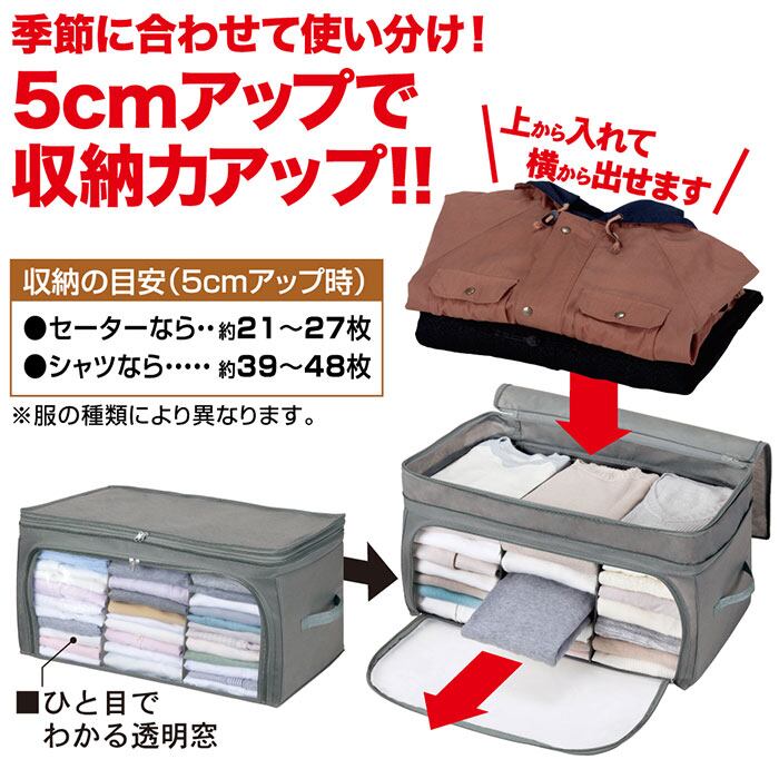 ・約5cm上に伸びて収納力アップ!かさばる秋冬物もしっかり収納「伸びて増量 竹炭収納ケース(レギュラータイプ)」