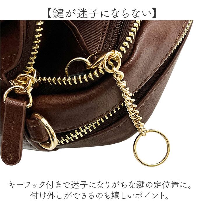 ・カード収納や現金の収納にピッタリなファスナーポケットを配置し充実な財布機能も魅力。