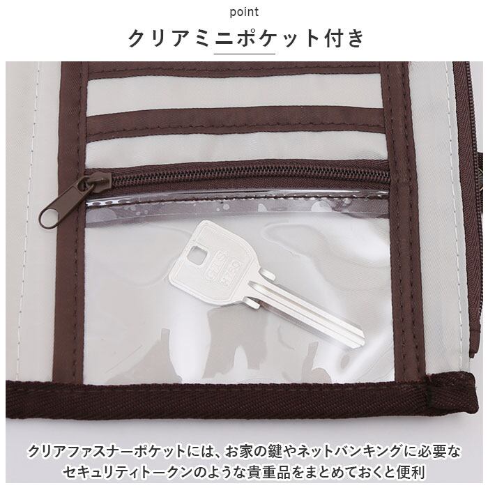 ・クリアファスナーポケットには、お家の鍵やネットバンキングに必要なセキュリティトークンのような貴重品をまとめておくと便利。