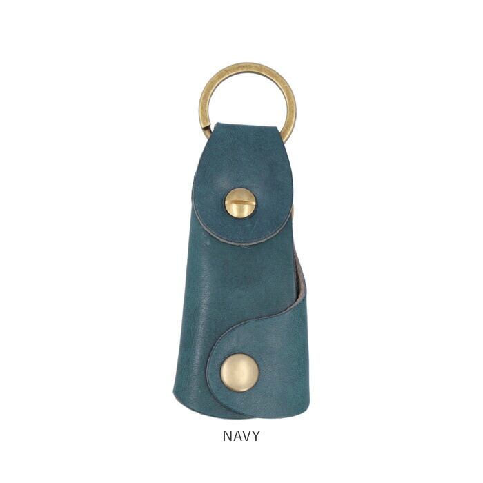 ・リベットやスナップボタンにはアンティーク感のある真鍮製の金具を使用。ケース上部には、家の鍵や自動車のスマートキーをつないで使えるキーリング付き。