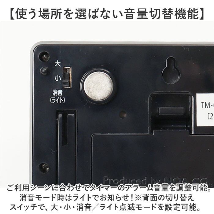 ・ご利用シーンに合わせてタイマーのアラーム音量を調整可能。消音モード時はライトでお知らせ!