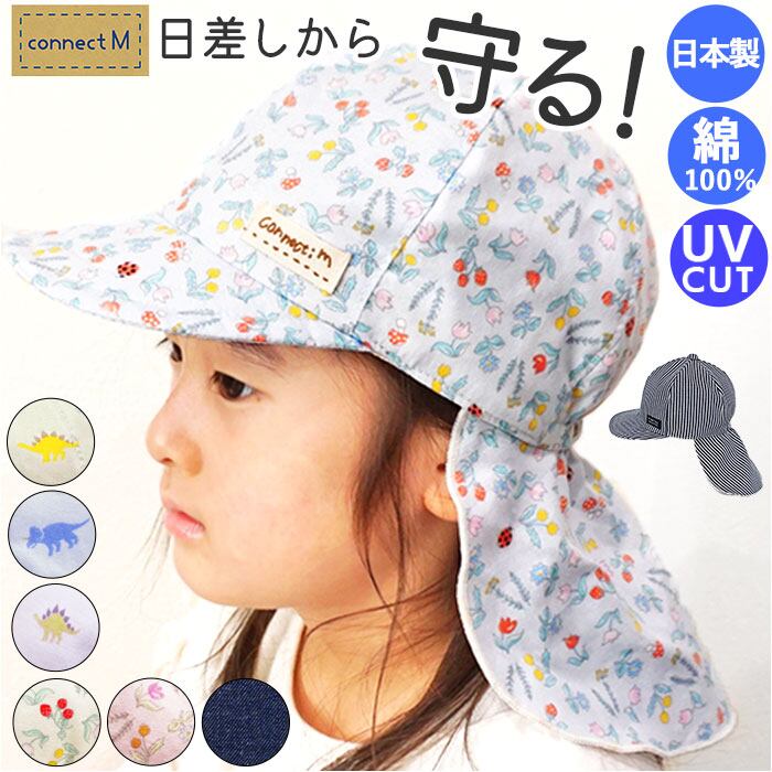 connect m 帽子 キッズ ゴム付き 通販 幼児 子供 こども 子ども キャップ ぼうし トドラーバオバブ あごゴム UVカット 日本製 つば 日よけ 首 綿 コットン 紫外線対策 日除け 洗える ギャザー入り コンパクト 折りたたみ 男の子 女の子