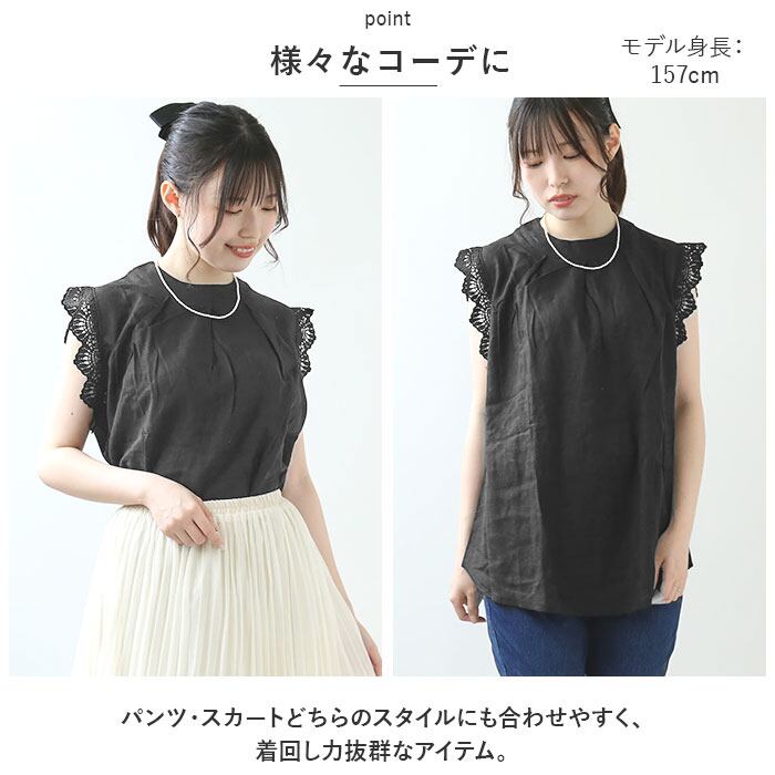 レース シャツ ブラウス レディース 通販 レースブラウス フリル ノースリーブ 切替 ハイネック スタンドカラー 立ち襟 コットン 綿 袖切替 袖レース フレンチスリーブ 立ち衿 夏 かわいい おしゃれ
