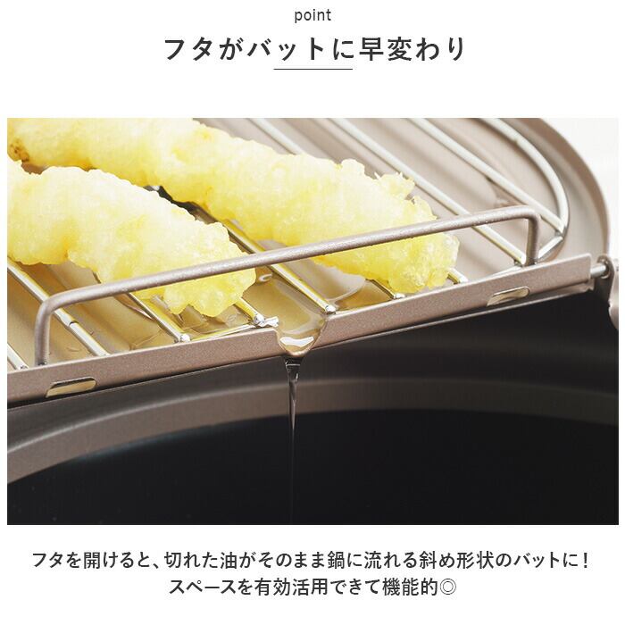 ・使いやすさばっちり。美味しく揚がる「食彩亭 バット蓋付天ぷら鍋」20cmタイプが新登場。