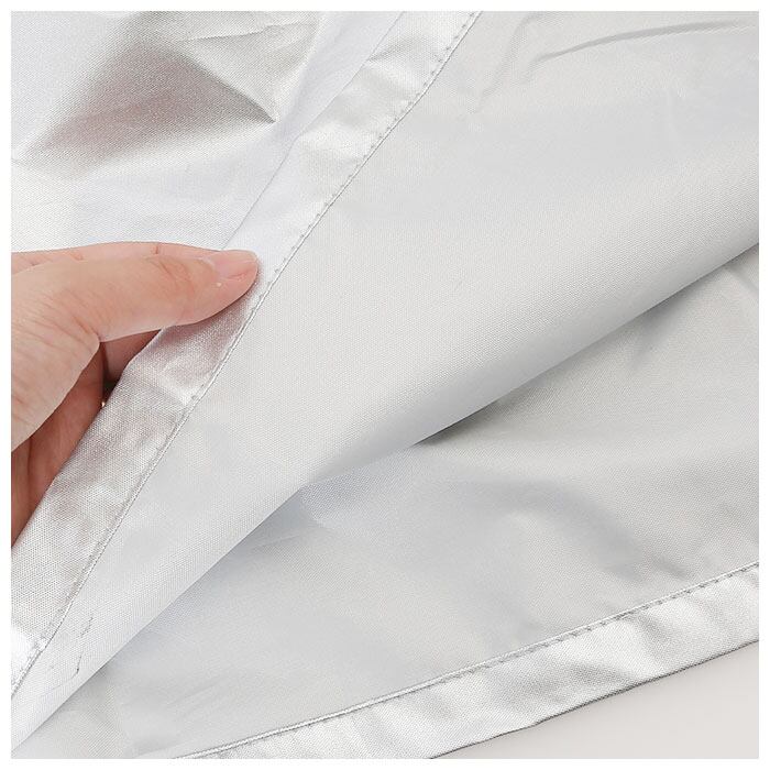 ・下部生地には120デニール・ポリエステルオックス100%生地を使用し、水滴をしっかりと弾く、はっ水性の高いシルバーコーティング加工済み。