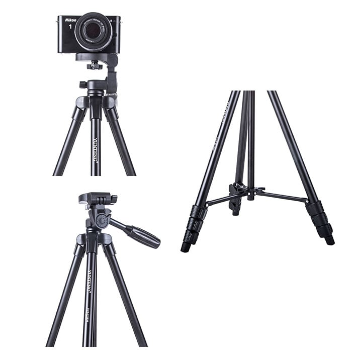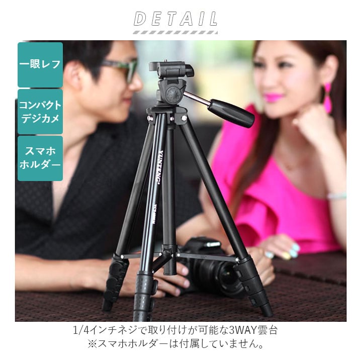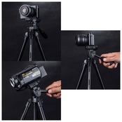 ・一眼レフでの本格撮影から、スマホでの集合写真撮影まで大活躍!3WAY雲台付き三脚が新登場。