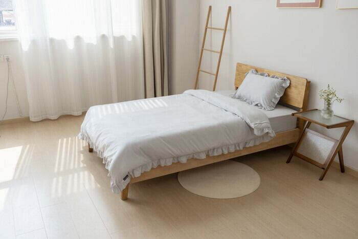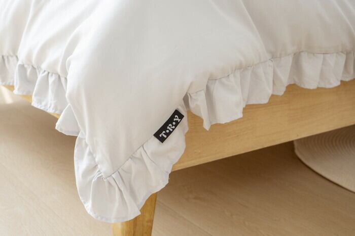 ・くすみカラーがフリルの可愛さを引き立てる、可愛いベッドカバー3点セット。