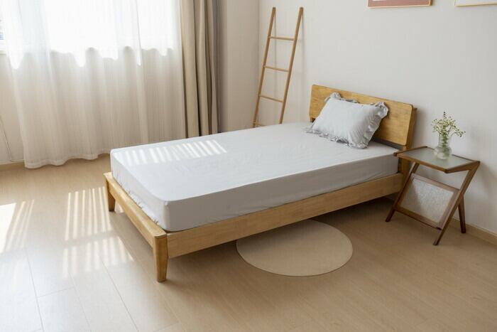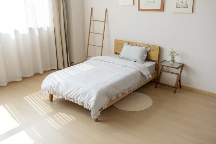 ・ボックスシーツタイプで、ほこりが入りにくく、カバーもなめらかな肌触りで快適に。
