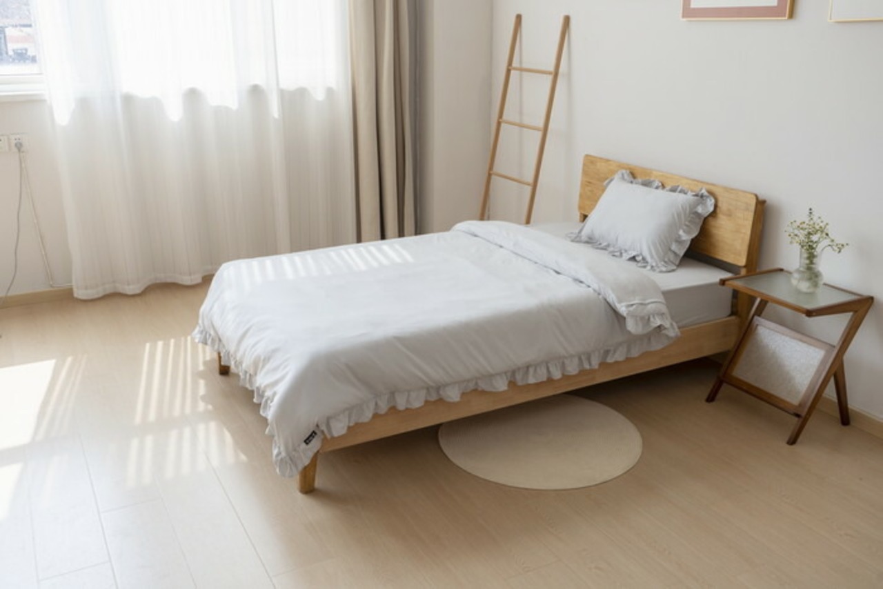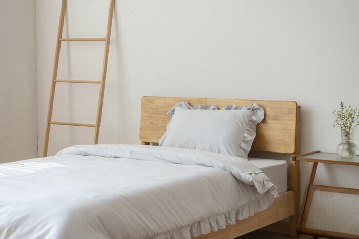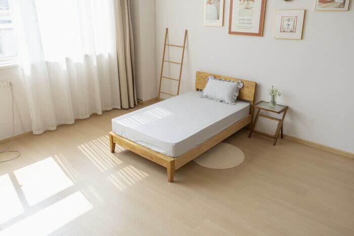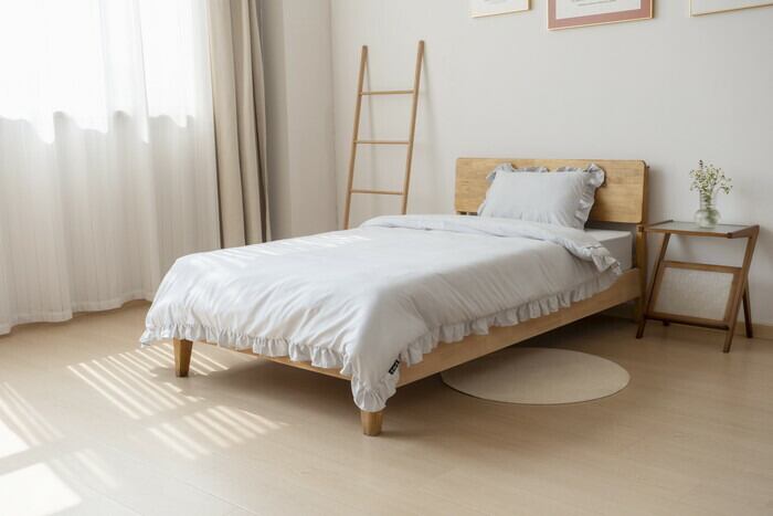 ・ボックスシーツタイプで、ほこりが入りにくく、カバーもなめらかな肌触りで快適に。