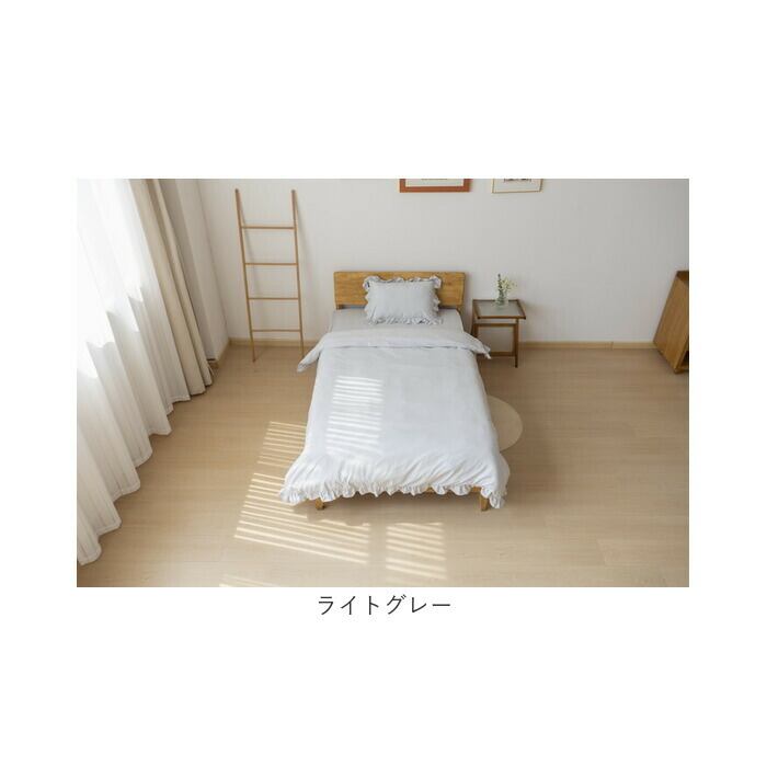 ・くすみカラーがフリルの可愛さを引き立てる、可愛いベッドカバー3点セット。