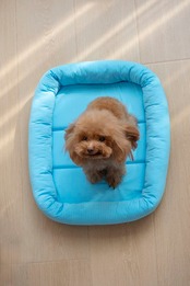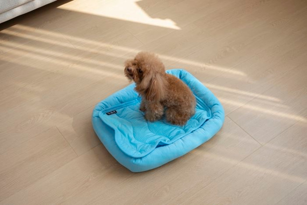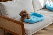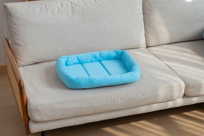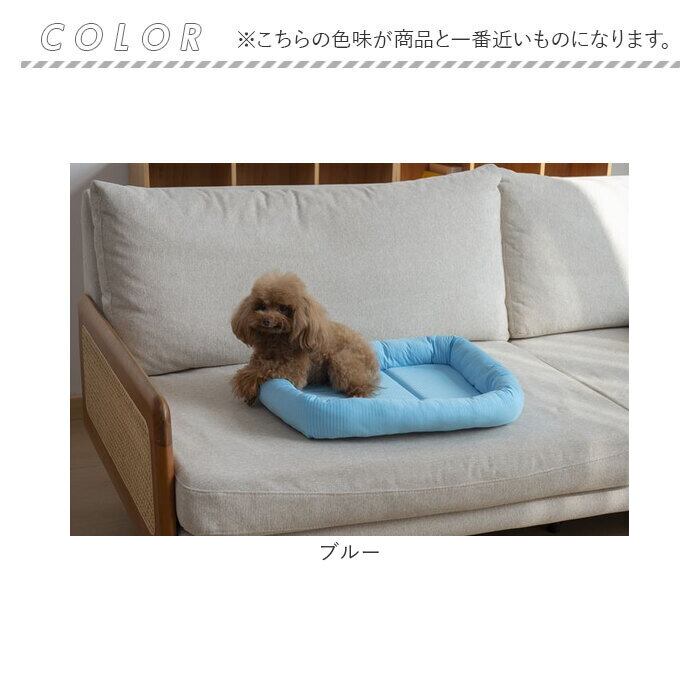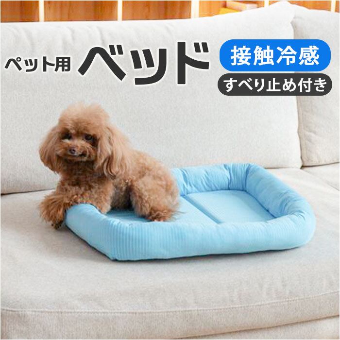 ・接触冷感素材を全面に使用し、エアコンの効いた室内ではより涼しさを感じられるデザインです。ふかふかで、ペットがくつろぎたくなるようなペットベッドです。