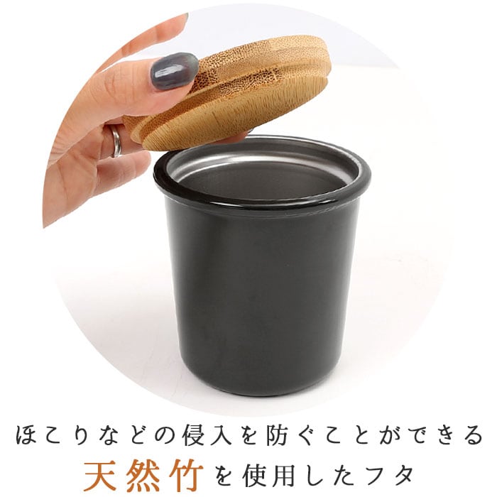 ・光沢塗装をかけてホーロー感を出したステンレス製のボディに、天然竹を使用したフタを合わせ、ナチュラルな印象に♪