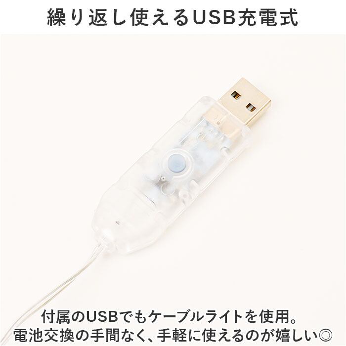 ・付属のUSBでもケーブルライトを使用。電池交換の手間なく、手軽に使えるのが嬉しい◎