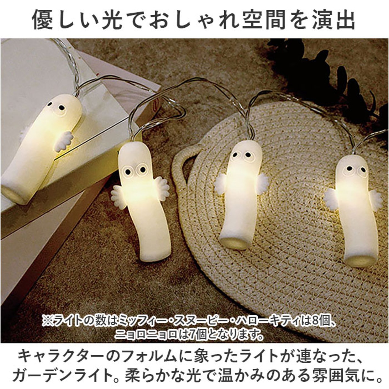 ・キャラクターのフォルムに象ったライトが連なった、ガーデンライト。柔らかな光で温かみのある雰囲気に。