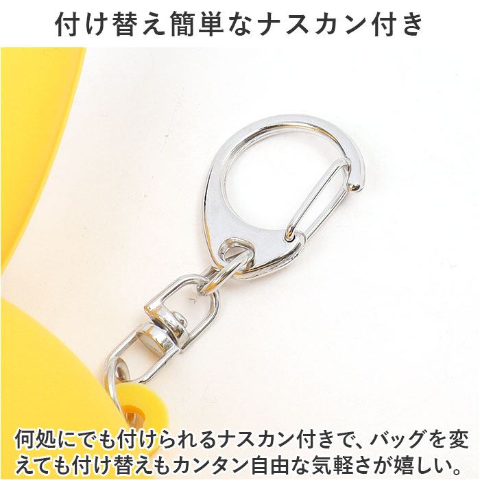 ・何処にでも付けられるナスカン付きで、バッグを変えても付け替えもカンタン自由な気軽さが嬉しい。