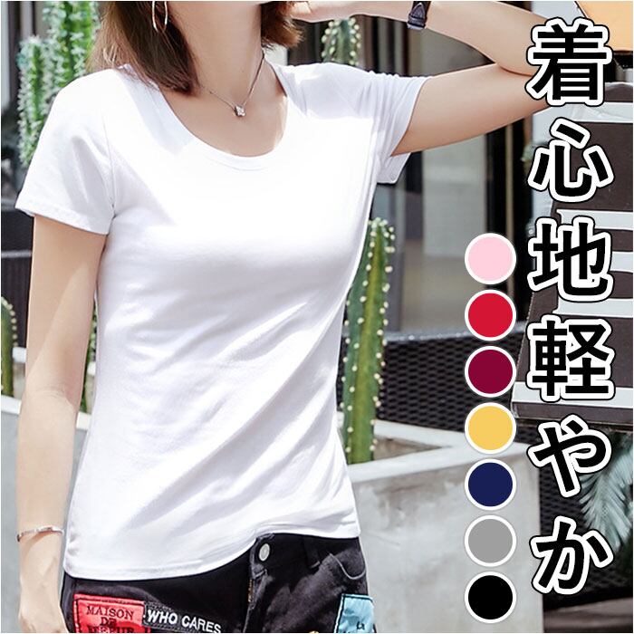 半袖 Tシャツ レディース 通販 tシャツ カットソー ラウンドネック コットン 綿 ラウンド カジュアル シンプル 無地 ホームウェア ボトムス きれいめ かわいい おしゃれ 大人