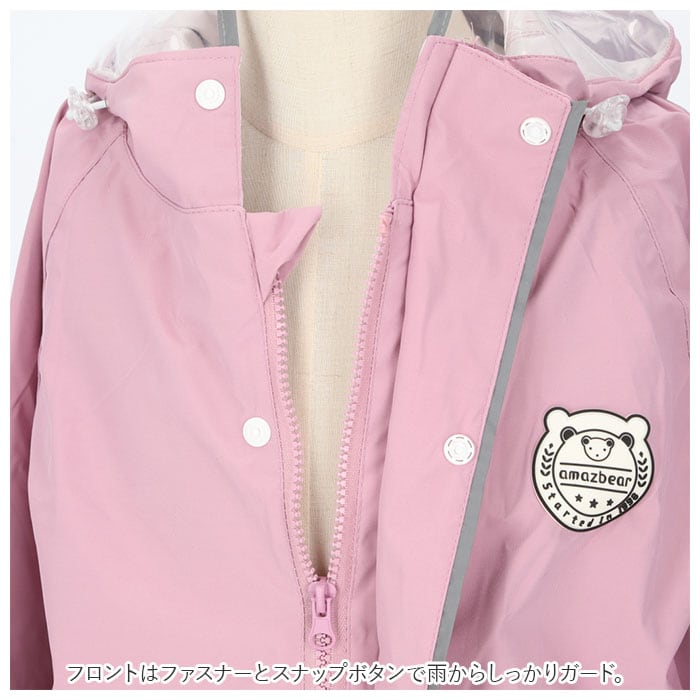 ・フロントはファスナーとスナップボタンで雨からしっかりガード。